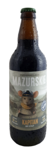 Mazurskie Dry Stout KAPITAN to lekki, ciemny stout z Mazurskiego Browaru o ok. 4 % alkoholu. Wyróżnia się wyraźnym, palonym charakterem – aromatem kawy i jęczmienia oraz smakami gorzkiej czekolady i świeżo palonej kawy, które dominują w profilu sensorycznym. Piwo jest pasteryzowane, niefiltrowane i nasycone azotem, co dodaje mu gładkiej tekstury przy zachowaniu intensywnej paloności.