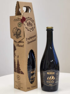 W prezentowym pudełku Red Wine Barrel Aged – to Mazurskie Ale Czerwony czyli wyjątkowo bogate piwo chmielone na zimno z dodatkiem amerykańskich odmian chmieli Chinook i Cascade, uwarzone w stylu American Amber Ale. Zdobywca trzech brązowych medali: w European Beer Challenge 2021r., Kraft Roku w 2017r.i w 2021r.