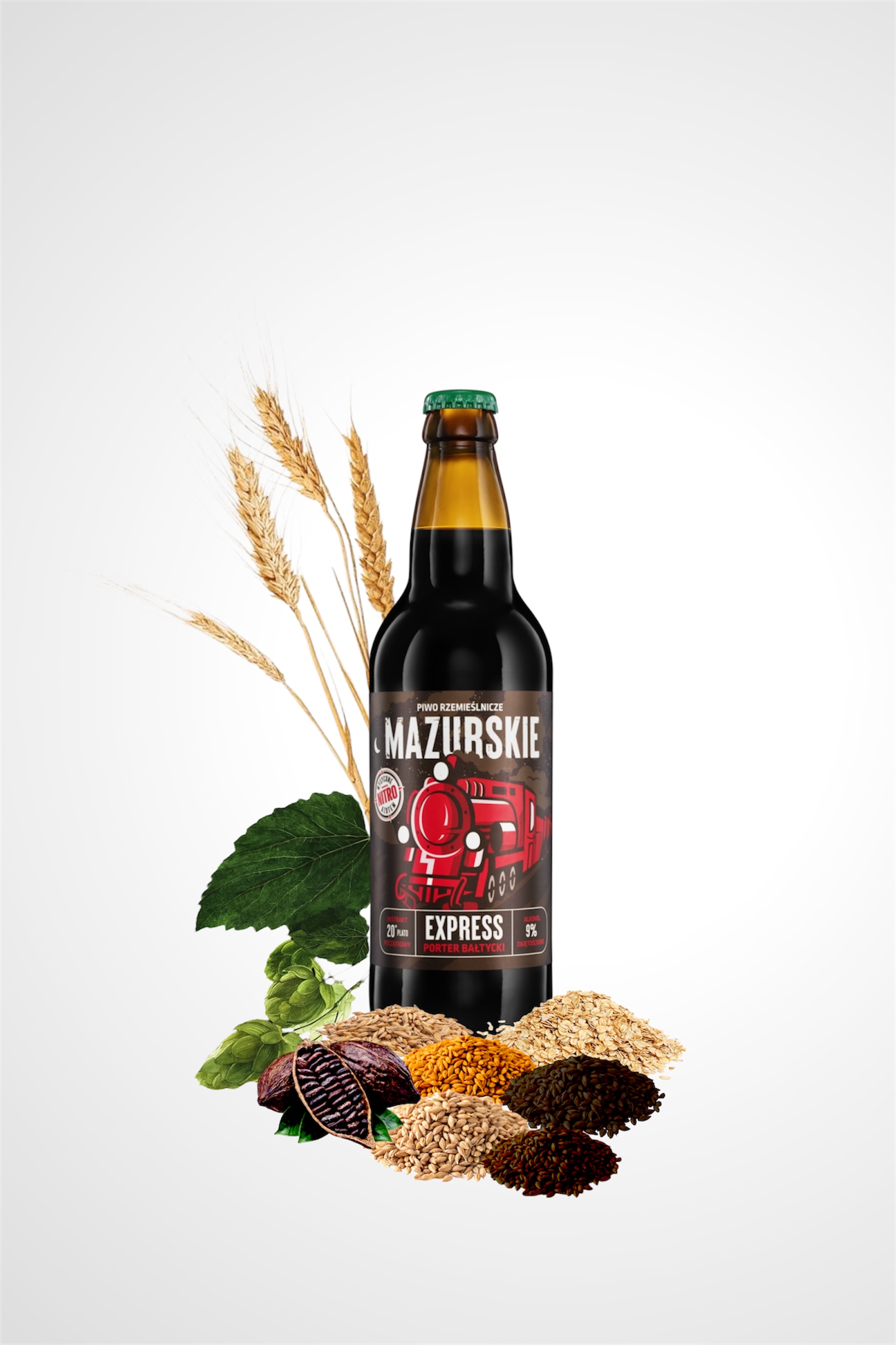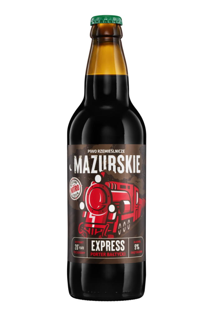 Mazurskie Porter Bałtycki / EXPRESS to rzemieślnicze piwo dolnej fermentacji w stylu Baltic Porter o 9 % alkoholu i ekstrakcie 20 °Blg. Warzone z mazurskiej wody ze słodów: pilzneńskiego, monachijskiego, karmelowego, czarnego palonego i czekoladowego, chmielone Magnum, z dodatkiem płatków owsianych i kakao. Ma pełne, treściwe ciało z aromatami karmelu, czekolady i lukrecji oraz zbilansowaną goryczką i finiszem gorzkiej czekolady. Piwo nasycone azotem świetnie komponuje się z deserami i wyrazistymi potrawami; zdobyło złoty medal European Beer Challenge 2021 i srebrny medal Lyon International Competition 2024.